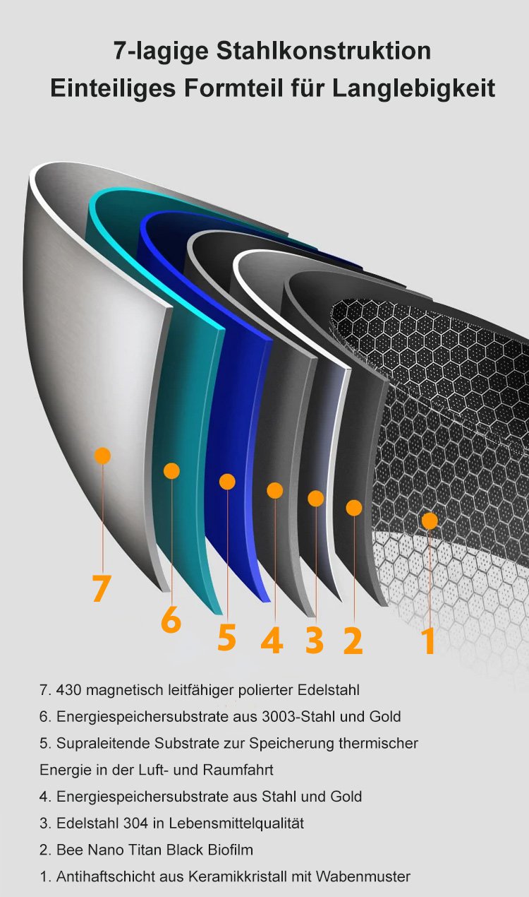 Antihaftbeschichtete Pfanne aus antibakteriellem Edelstahl der neuen Generation